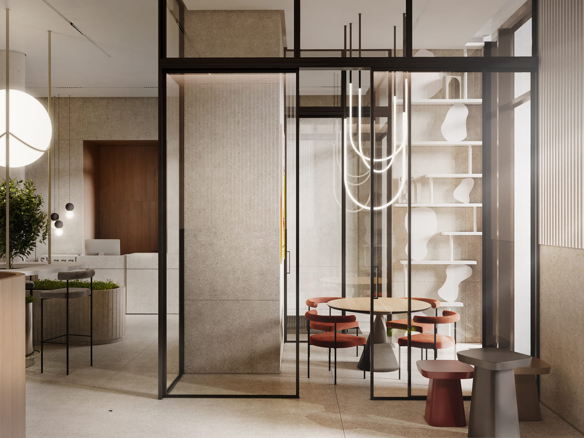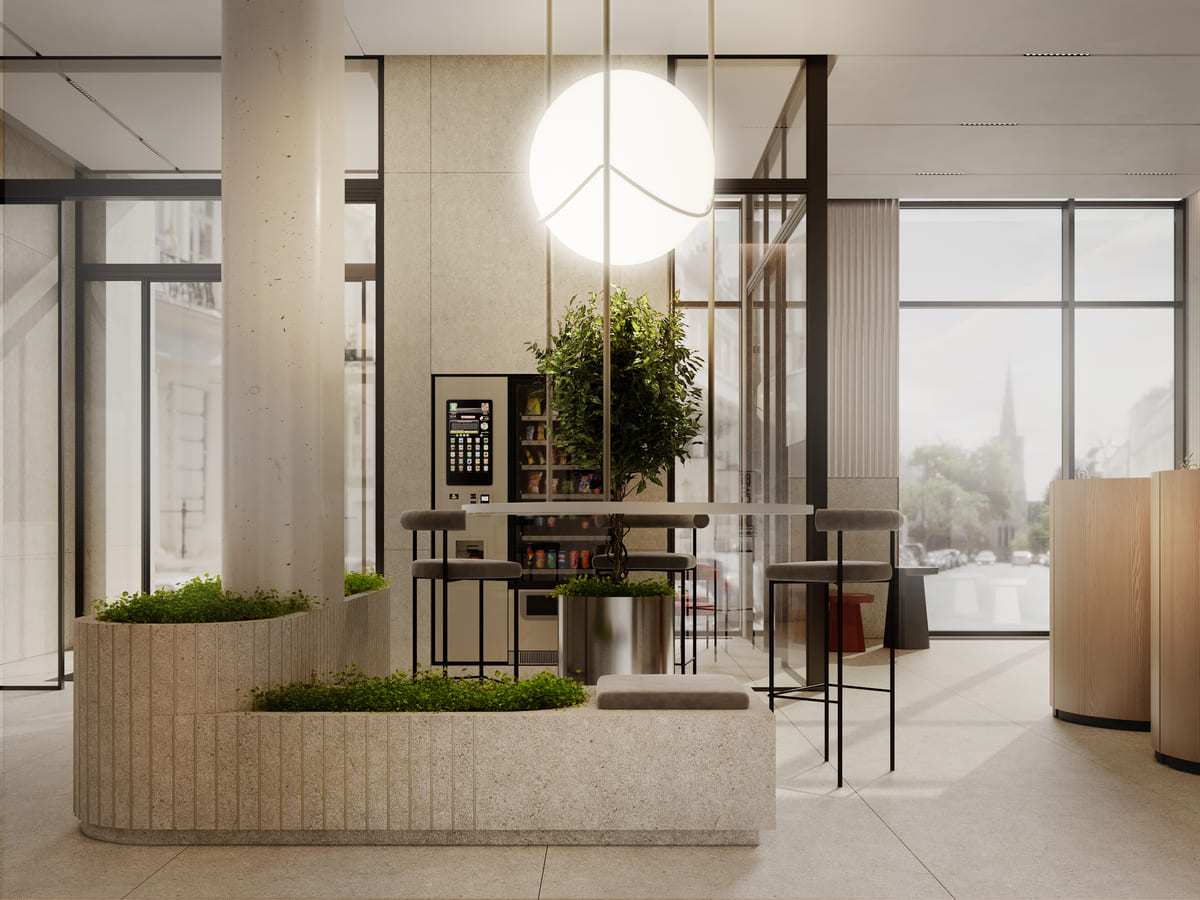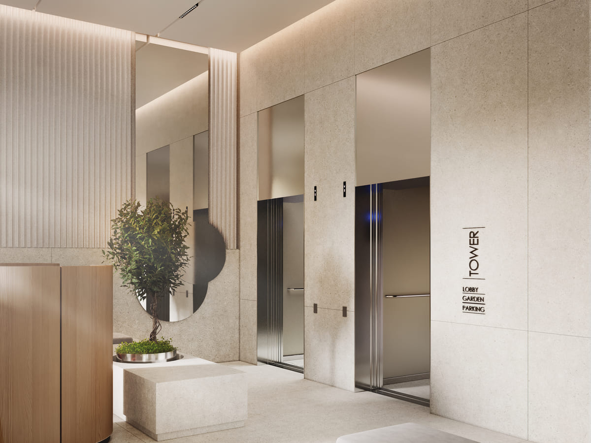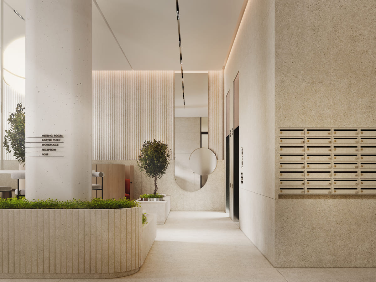Лобби выполнены в стиле урбан-минимализма, с продуманной функциональностью: