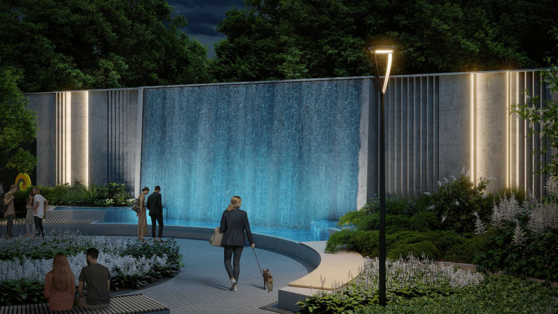 Приватная дворовая территория «Симоновского Вала» — это закрытое, охраняемое и тщательно спроектированное пространство для отдыха жителей. Центральным элементом благоустройства стал элегантный водопад, умиротворяющий звук которого создает особую расслабляющую атмосферу.