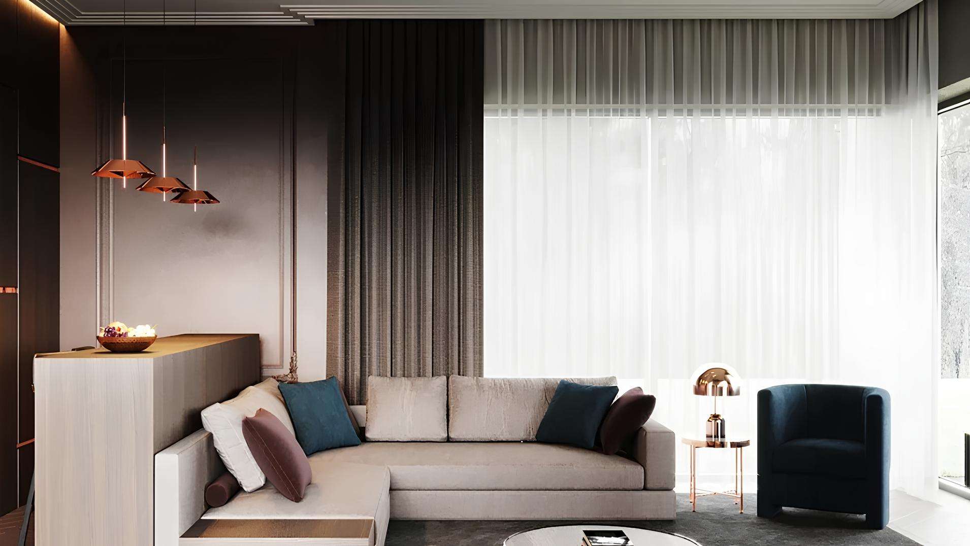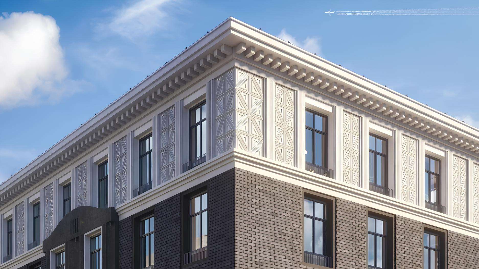 Внутреннее оформление общественных пространств выдержано в возвышенной эстетике ар-деко, являясь отсылкой к золотой джазовой эпохе Фрэнка Синатры. Просторные окна в апартаментах обеспечивают максимальное проникновение дневного света, создавая светлую и радостную атмосферу в интерьерах.