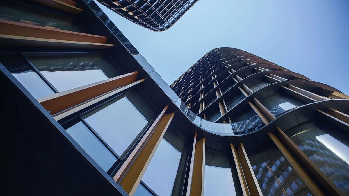 Уникальная форма зданий расширяется к верхним уровням, создавая ощущение свободы и легкости. Фасады оформлены в индивидуальных оттенках металлических ламелей – от холодного серебра до тёплого золота, что придаёт каждой башне собственную узнаваемость.