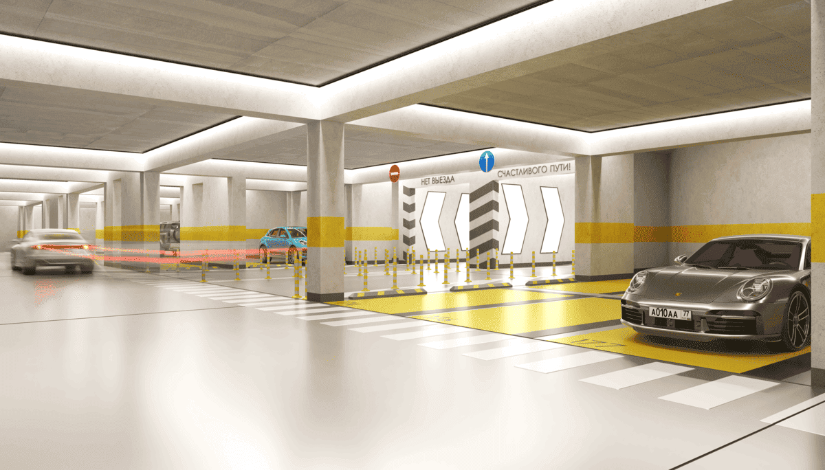 - Трехуровневый подземный паркинг на 380 автомобилей