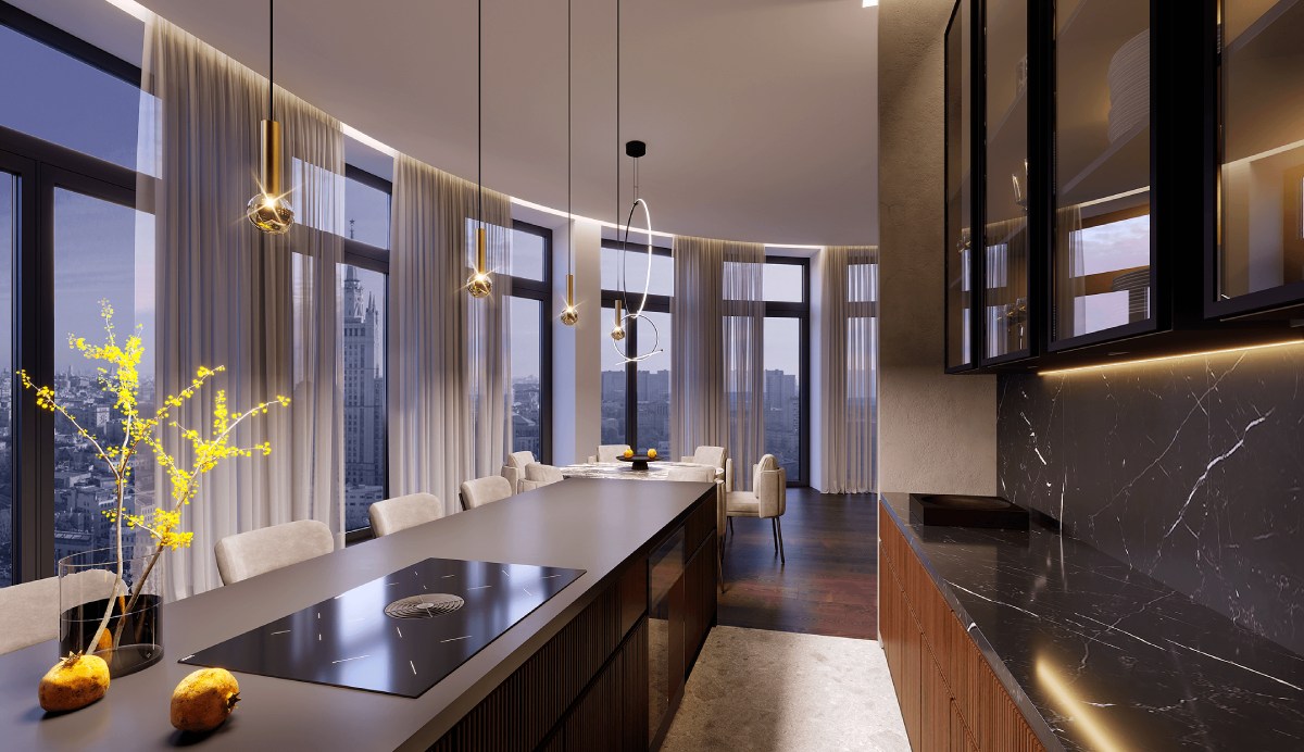 Это проект с полноценной инфраструктурой для комфортной и насыщенной жизни: фитнес-центр с бассейном и SPA-зоной, авторские рестораны, собственный кинозал и благоустроенное пространство с детскими и спортивными зонами.