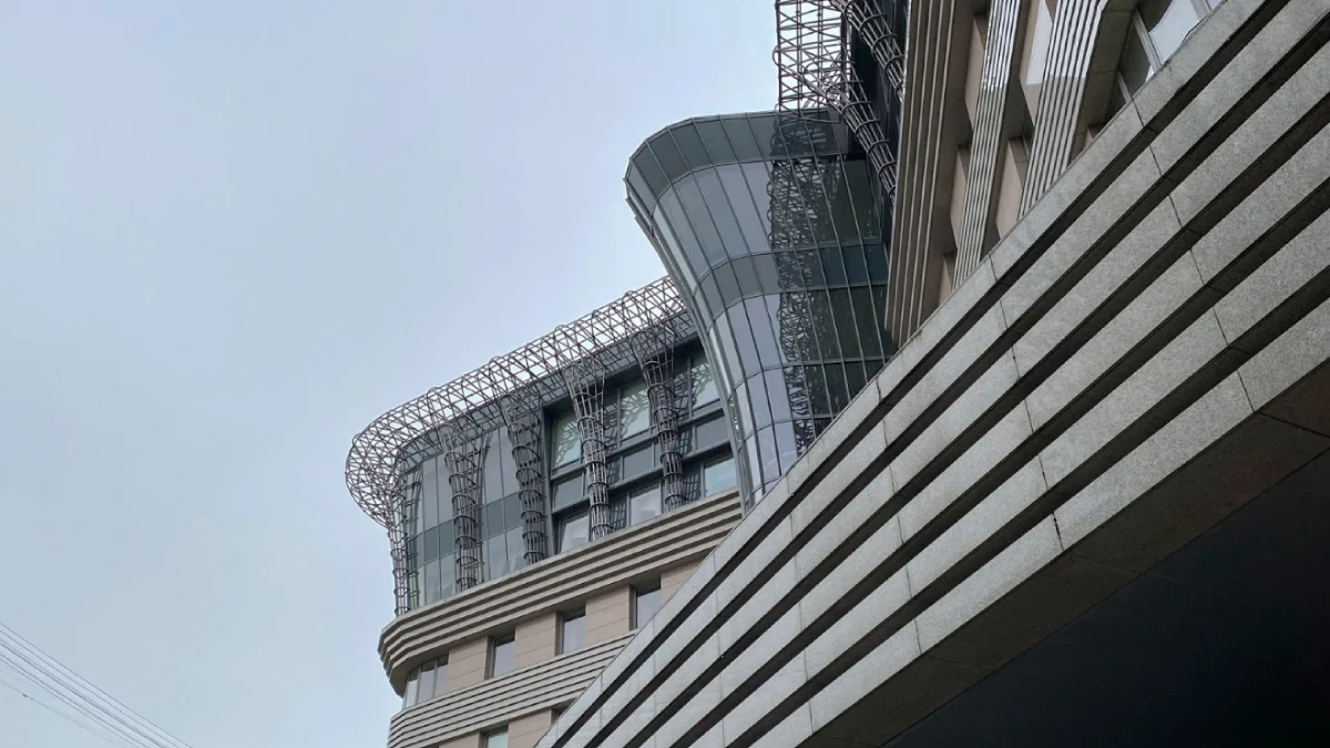 Фасад дома выполнен в стиле фьюжн и сочетает стекло, металл и натуральный гранит. Необычная геометрия выделяет дом на фоне классической застройки «Золотой мили» и подчеркивает статус проекта.