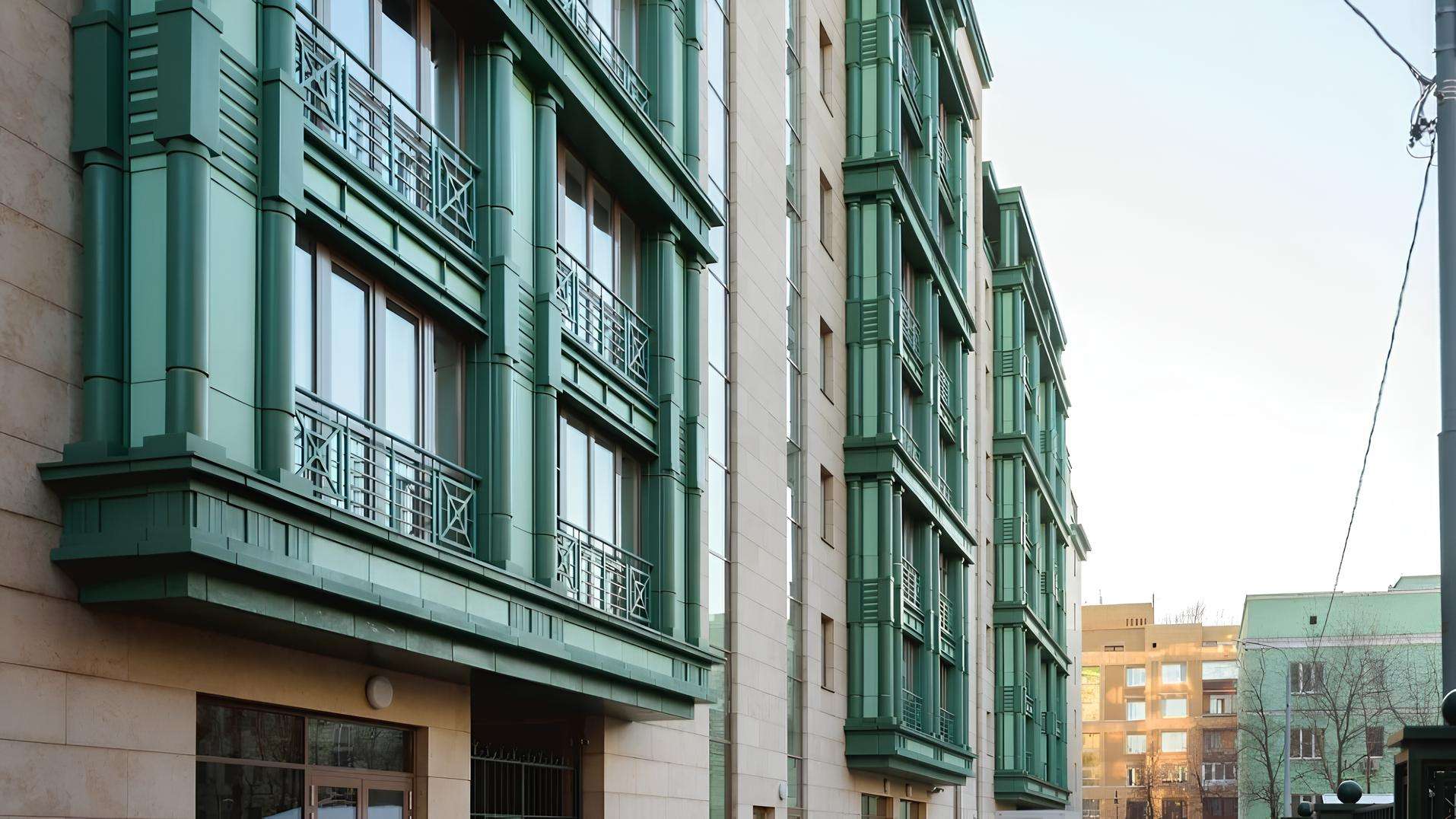 Архитектура ЖК «Сытинский» представляет собой гармоничное сочетание классических традиций и современных тенденций. Фасады зданий облицованы натуральным камнем теплых оттенков, что создает ощущение фундаментальности и респектабельности.