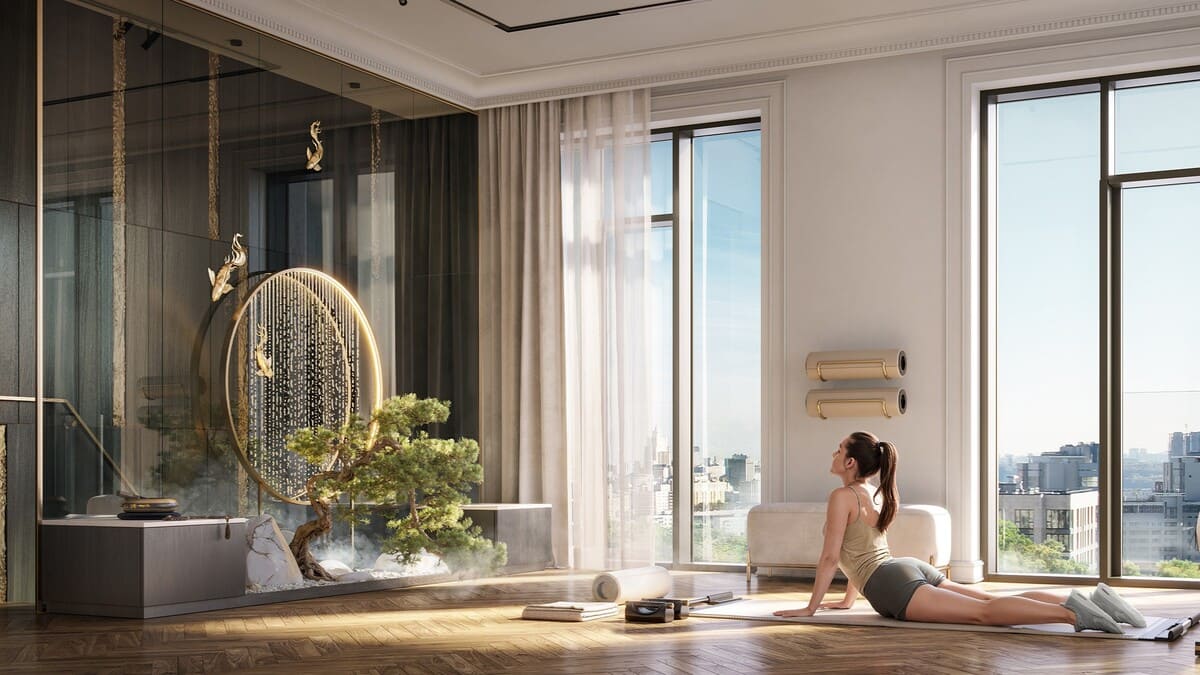 Дома оснащены самыми полными и лучшими системами комфорта: приточно-вытяжная вентиляция с двухступенчатой фильтрацией воздуха; высокотехнологичные индивидуальные системы кондиционирования; очистка воды до уровня бутилированной питьевой; в домах всегда есть горячая вода. Управляет работой систем комфорта здания Building Management System (BMS).