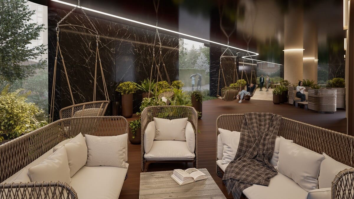 В каждой входной зоне предусмотрены ресепшен с консьерж-сервисом, удобные мягкие зоны ожидания, комнаты для хранения колясок и велосипедов.