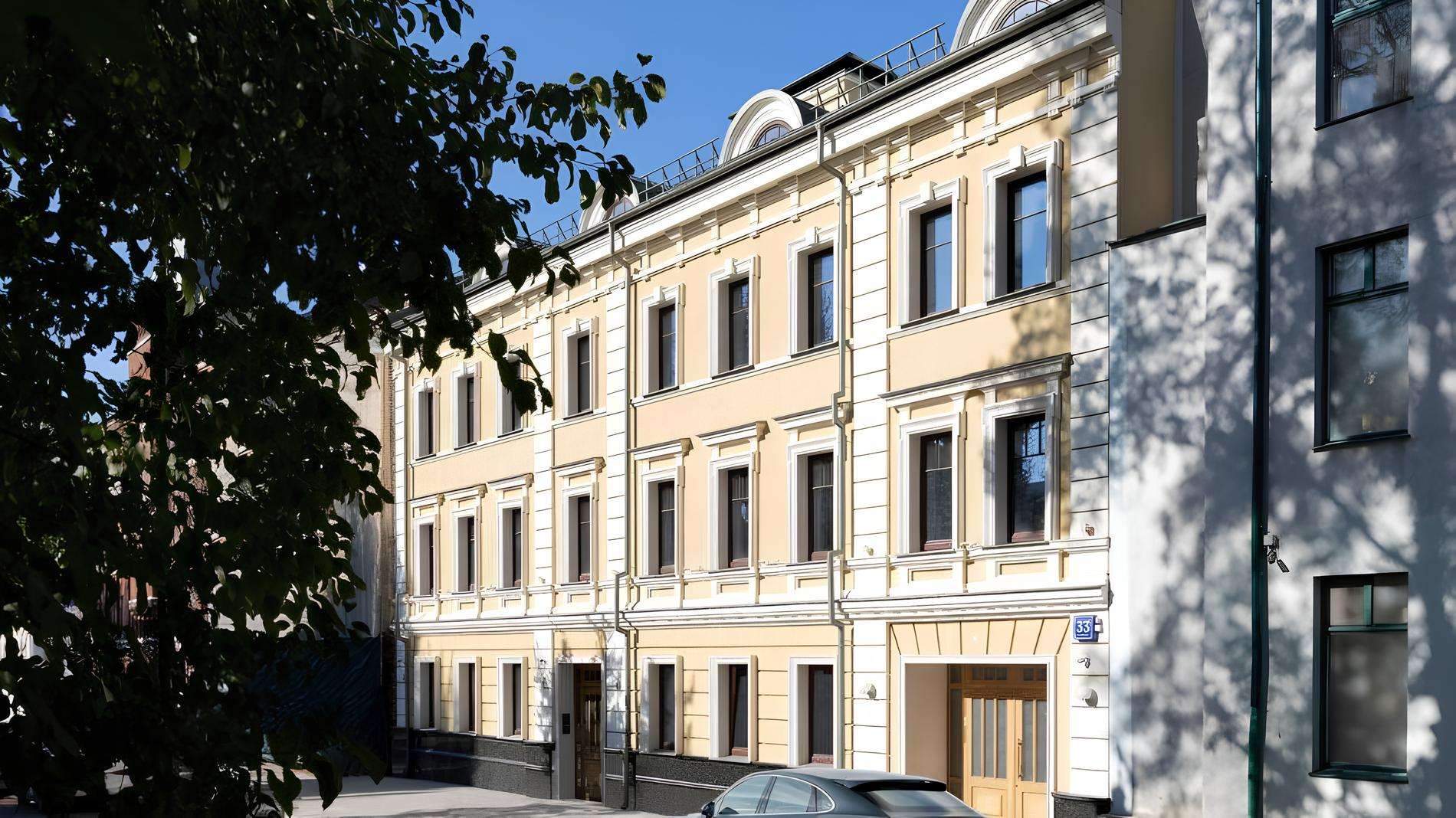 Исторический фасад здания гармонично сочетается с современными элементами, такими как открытые террасы и французские балконы. Окружающая территория отличается близостью к знаковым паркам и садам, включая Цветной бульвар, сад «Эрмитаж» и «Аптекарский огород».