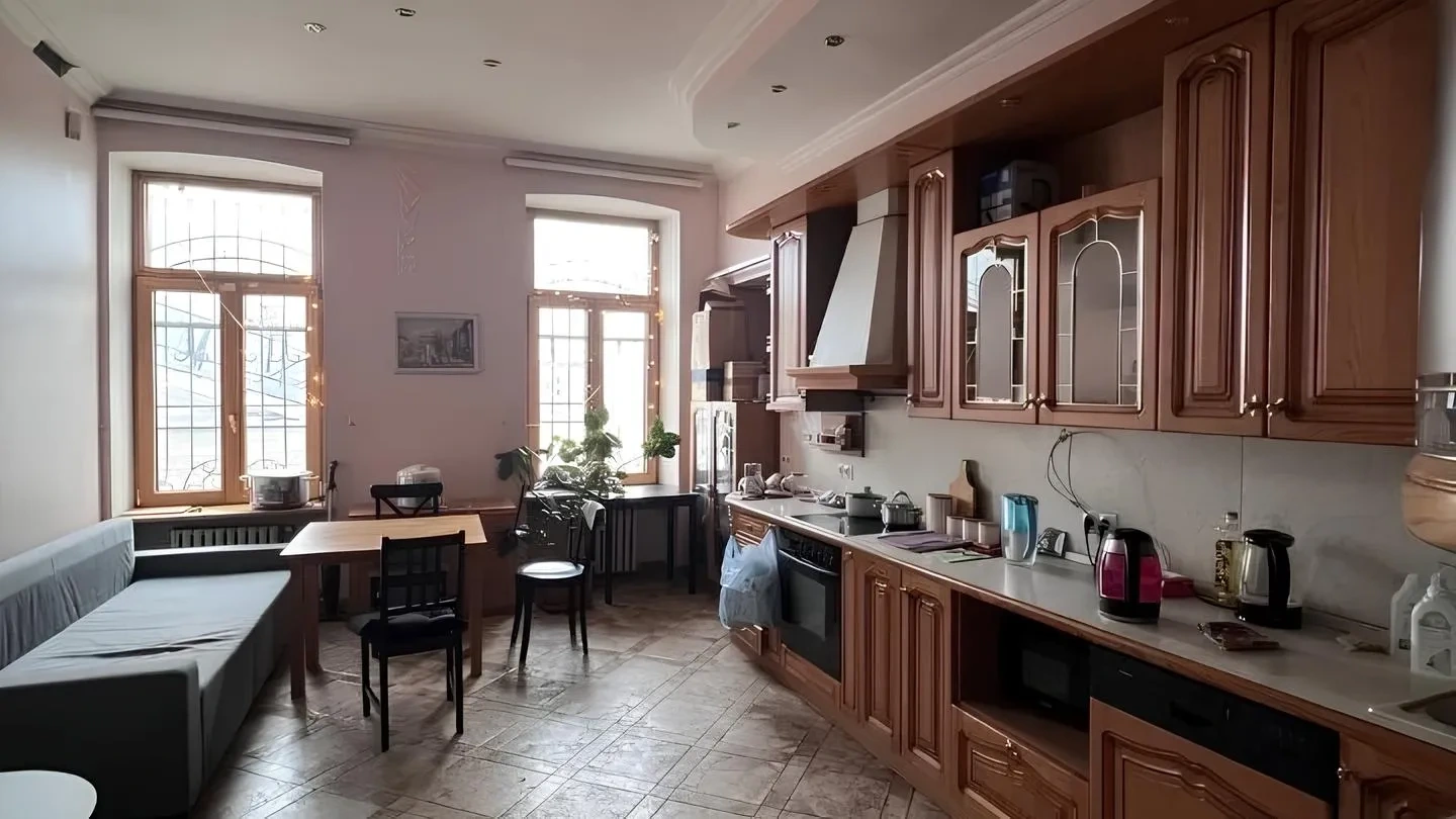 Свет, проникающий через высокие окна, подчеркивает простор помещений и исторические детали, создавая уникальную атмосферу аутентичности и комфорта.