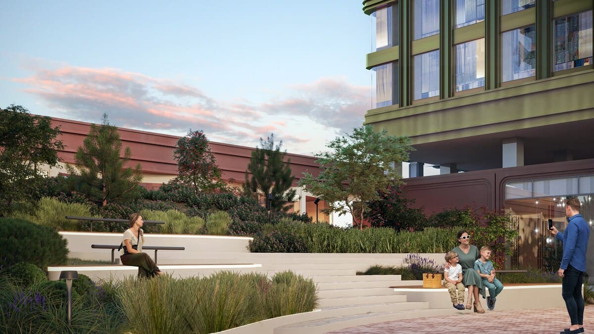 На благоустройство выделено более 2,6 гектаров – это масштабное пространство для жизни на свежем воздухе. Центральная площадь спроектирована с использованием геопластики, что создает интересный рельеф и зонирование.