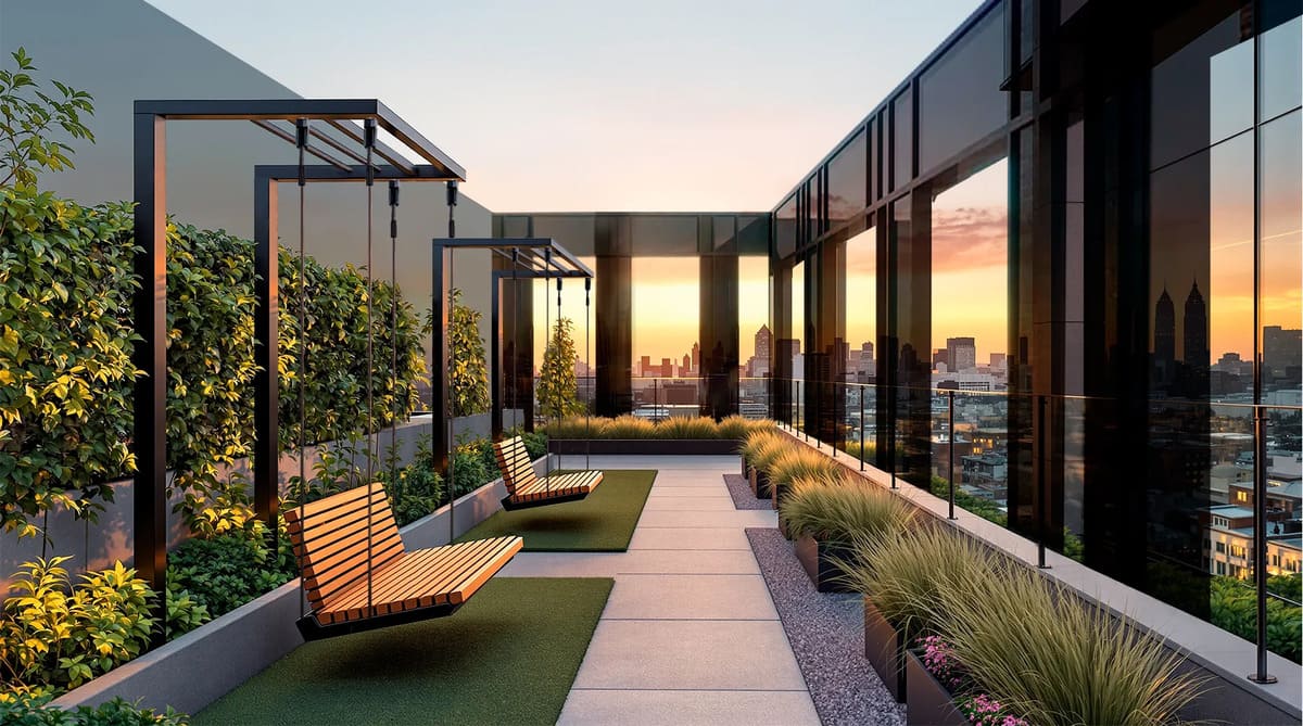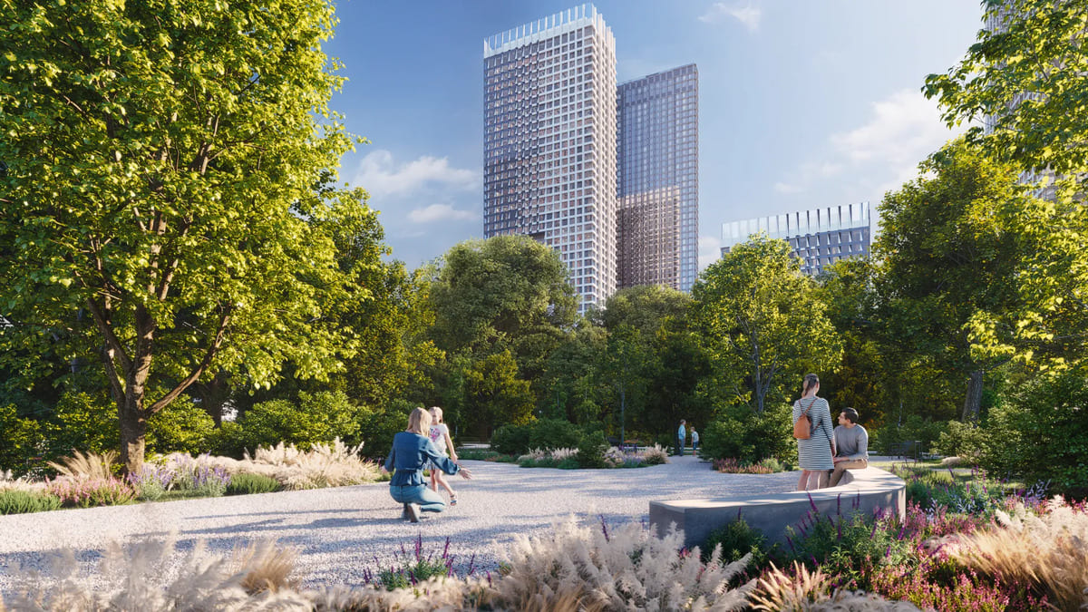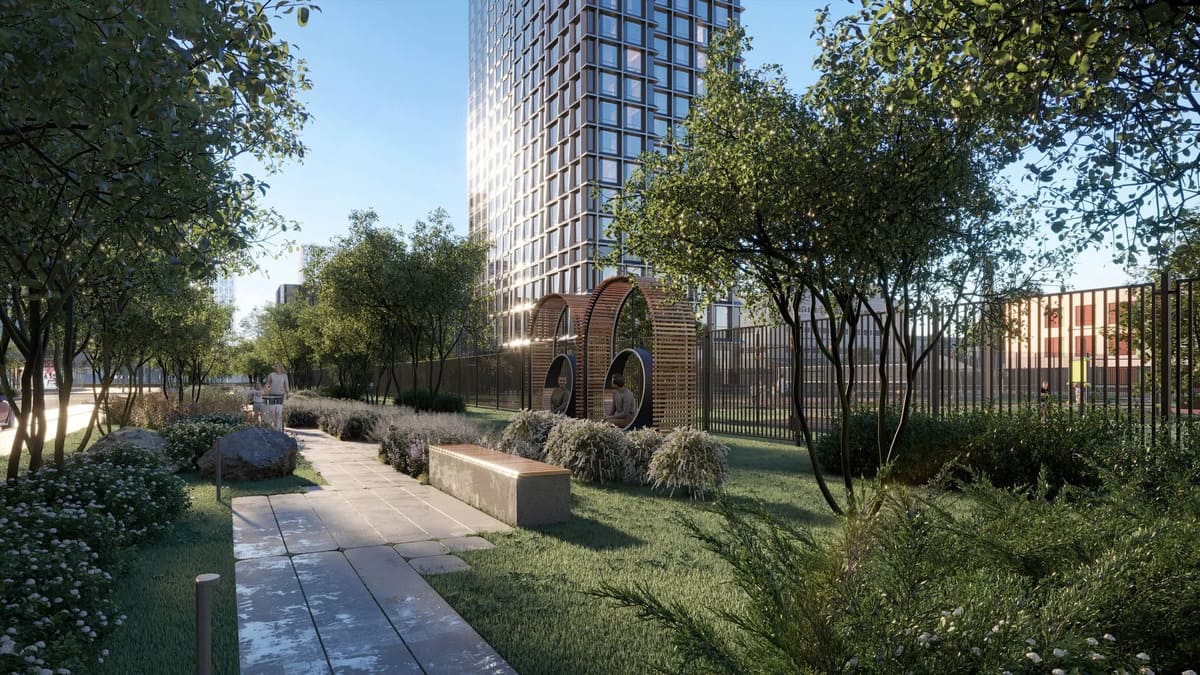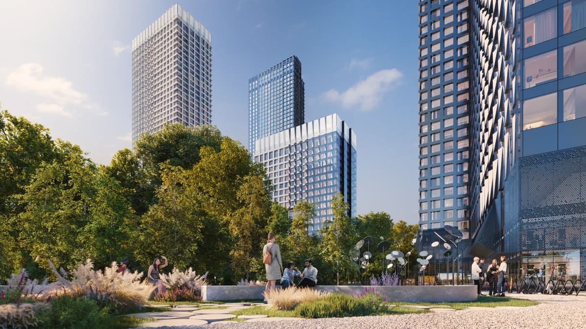 Пять башен Upside Towers – это яркие силуэты, которые уже стали новой вертикальной доминантой района. Их выразительные очертания, отделанные стеклом и металлом, создают архитектуру, способную вдохновлять. Башни словно парят над городом, а их зеркальные фасады отражают свет, небо и пульсирующую энергию мегаполиса.