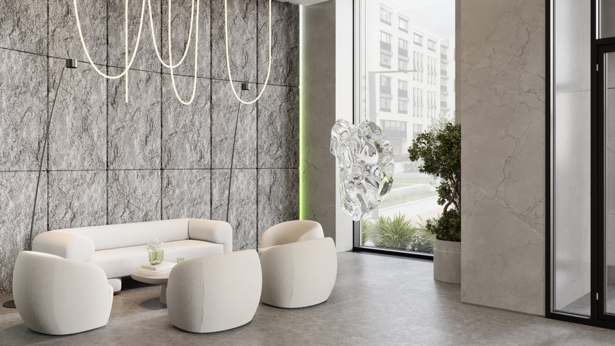 Каждое здание встречает резидентов и гостей авторским лобби, созданным по проекту Mad Architects совместно с Balcon studio.