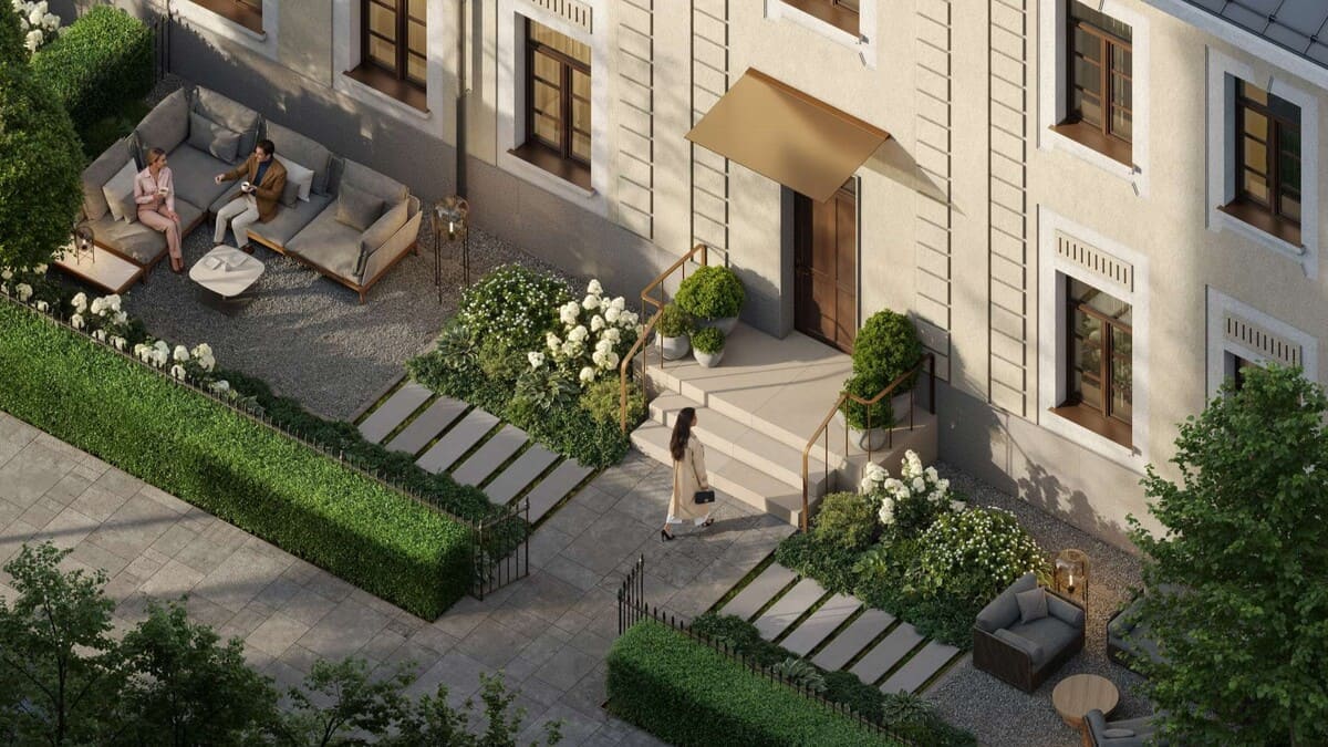 На территории комплекса разместятся галереи, спортивные зоны и дополнительные общественные пространства, которые обеспечат комфортный ритм жизни, сочетающий приватность и возможности для общения.