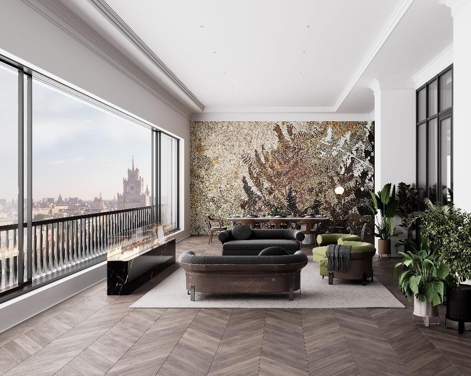 В отделки использованы премиальные материалы: мрамор, натуральный камень, дерево ценных пород.