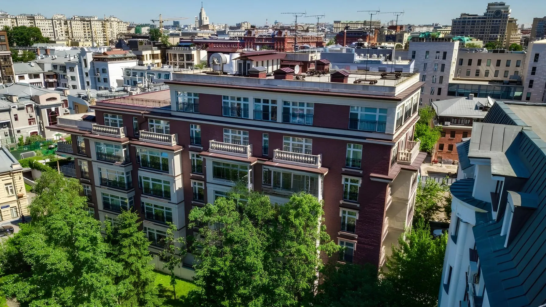 Район «Золотой мили» известен концентрацией элитных бутиков, учебных заведений и медицинских клиник. Рядом с домом расположены ключевые достопримечательности столицы, включая Пречистенскую набережную и живописные скверы.