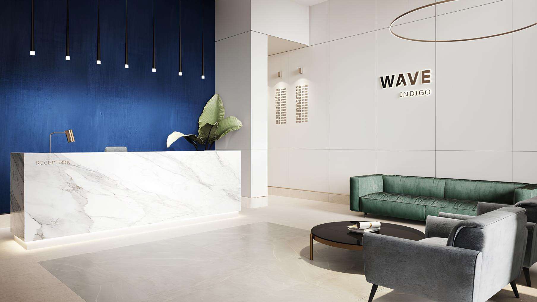 Входные группы и лобби «Wave» задают тон высокому уровню комфорта и встречают жителей утонченной атмосферой. Дизайн лобби сочетает в себе минимализм с яркими акцентами в духе ар-деко.