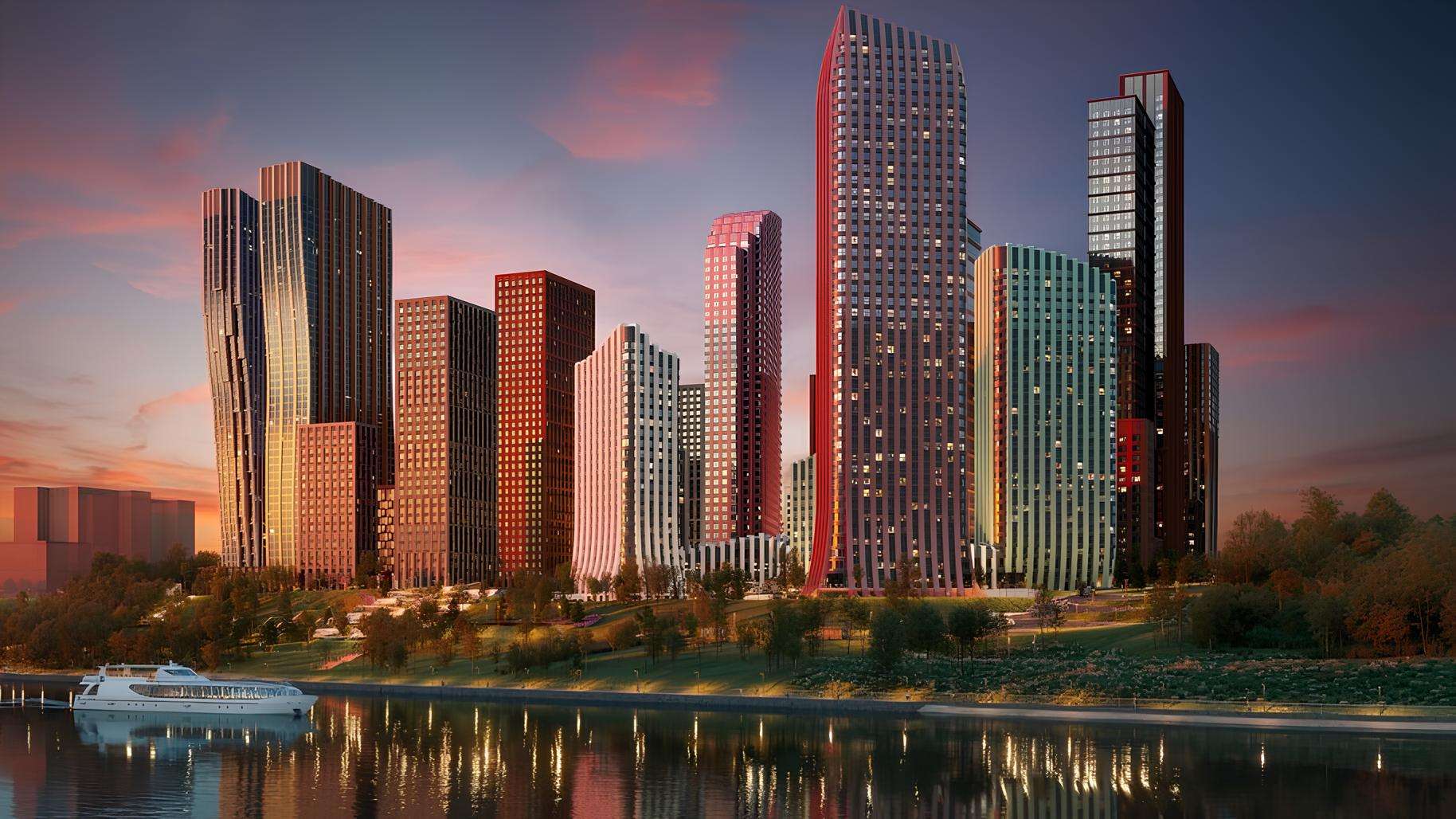 Высота некоторых зданий достигнет 180 метров, что в сочетании с панорамным остеклением откроет жильцам впечатляющие виды на город и водные пространства.