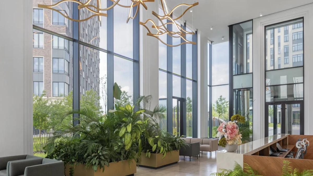 Лобби оборудованы зонами отдыха, стойкой ресепшен с деликатным консьерж-сервисом и удобными колясочными для жителей.