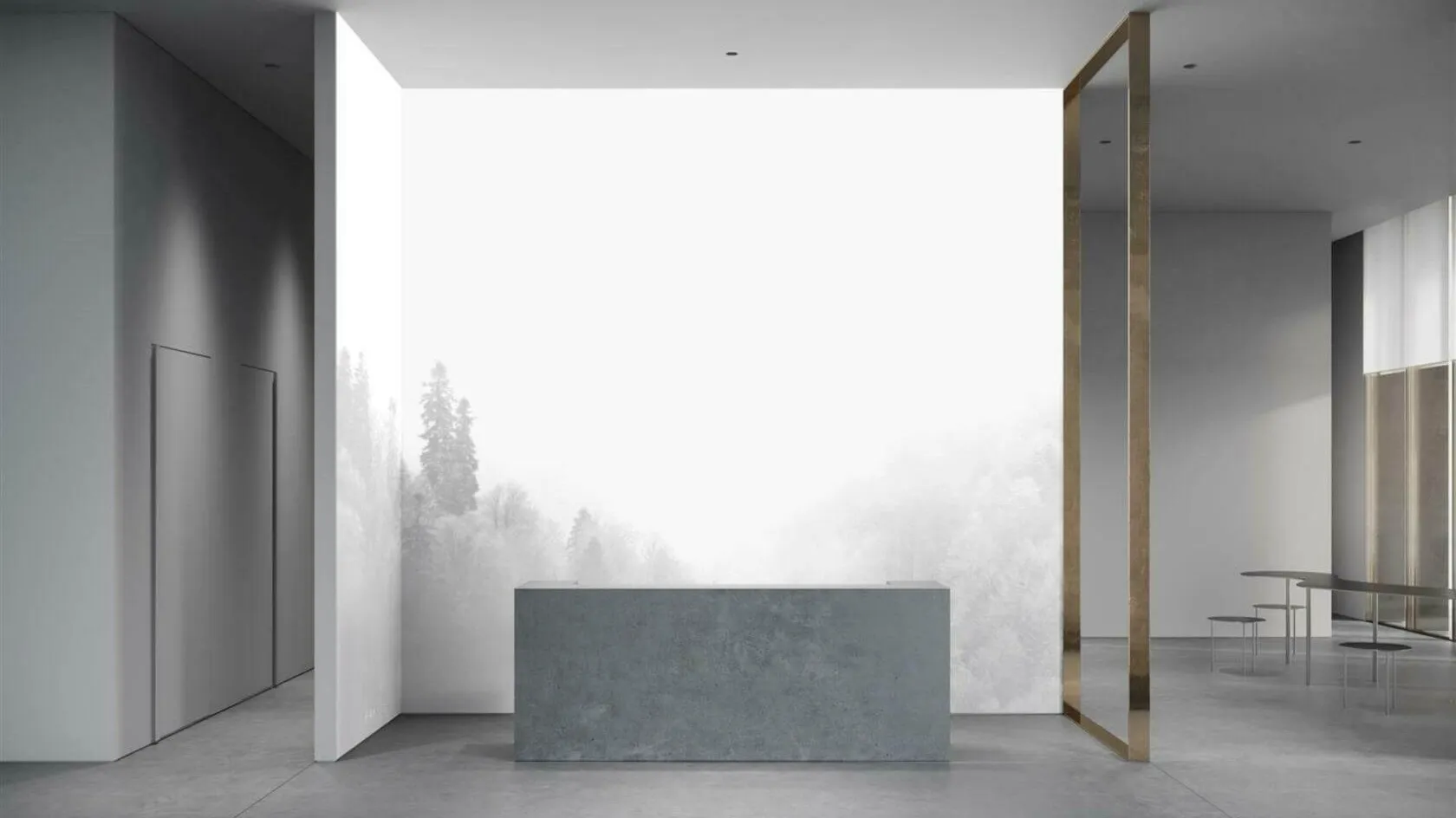 Лобби решено в концепции «белого куба» с наливными полами, где минимализм подчеркивается дизайнерской мебелью и стойкой ресепшн с цифровыми арт-инсталляциями.