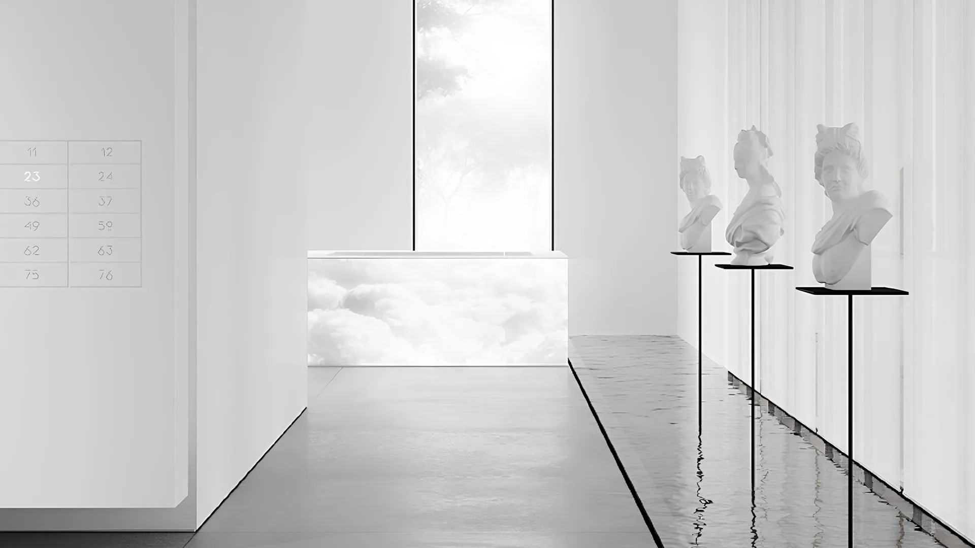 Интерьер украшают классические белоснежные скульптуры и современные инсталляции.