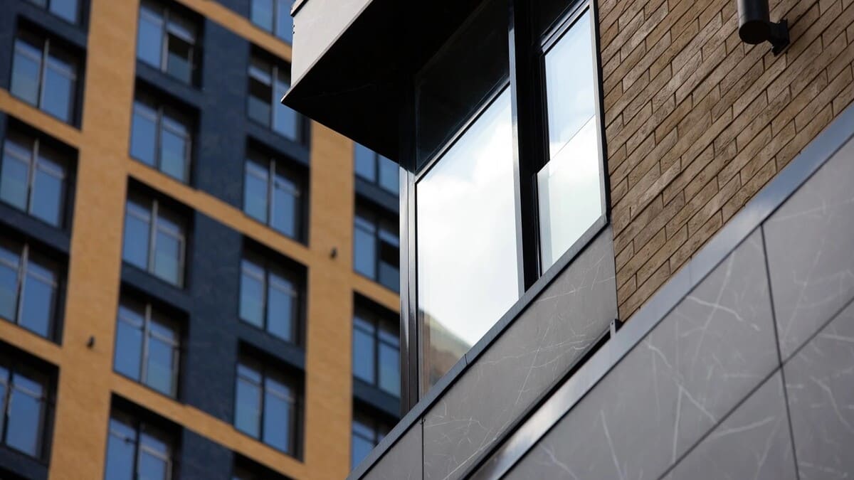 Панорамные окна высотой 2,75 м с алюминиевым профилем создают максимальный уровень естественного света и энергоэффективности. Прозрачные французские балконы визуально расширяют пространство, придавая лёгкость фасадам.