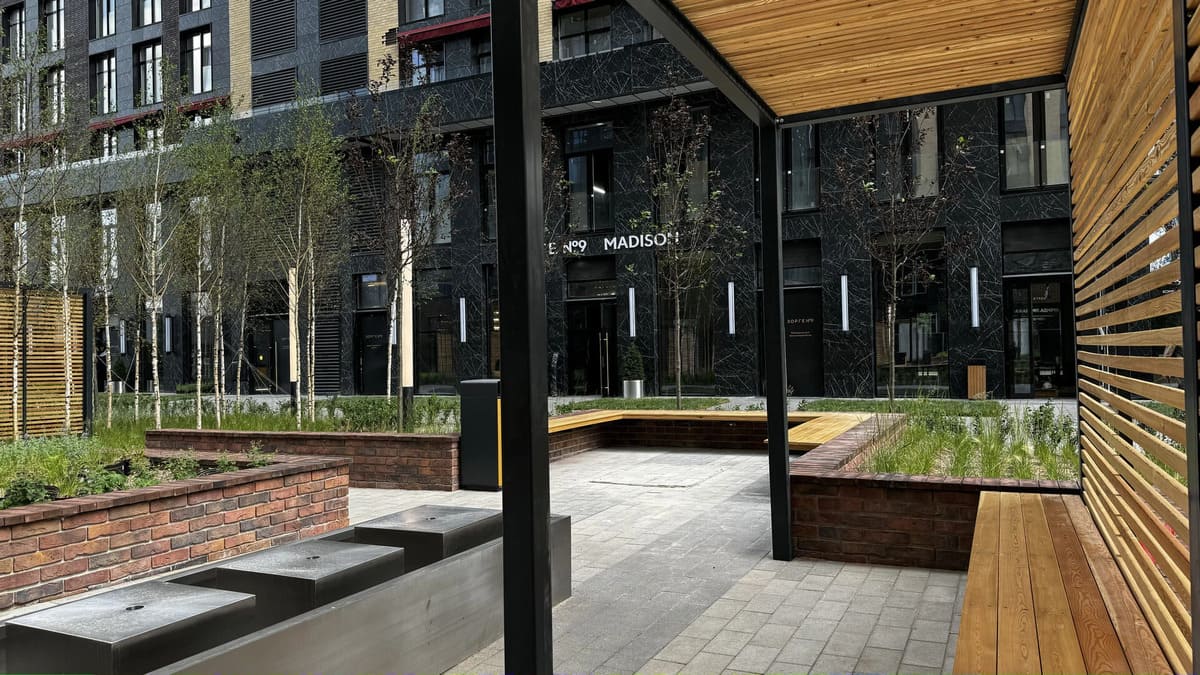 На территории квартала раскинулся приватный парк площадью 2 га – зелёный оазис с фонтаном, дизайнерским ландшафтом и арт-инсталляциями.